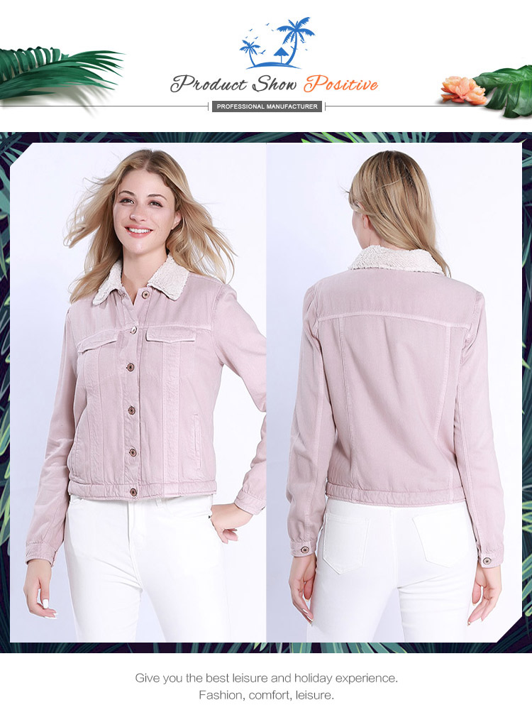 Item Name | Fashion trendy comfortable cotton pink women's custom winter jean jackets and coats with fleece inside |