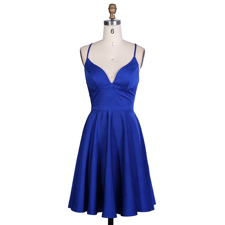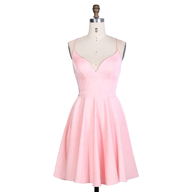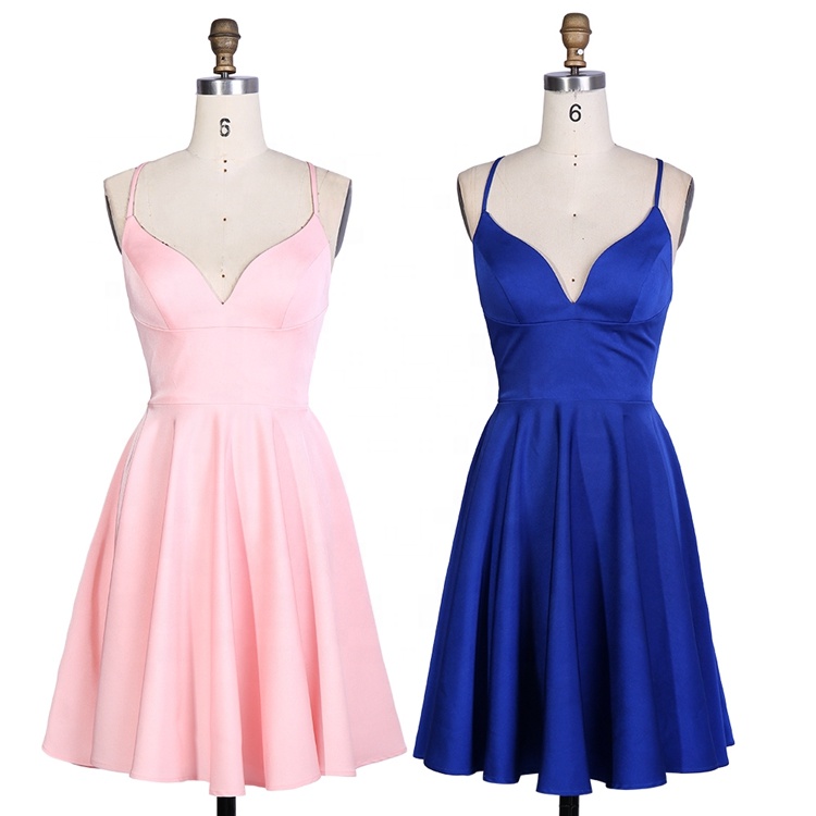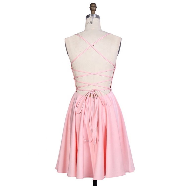 Simple style open back lace up v neck cheap mini skirt homecoming dress
