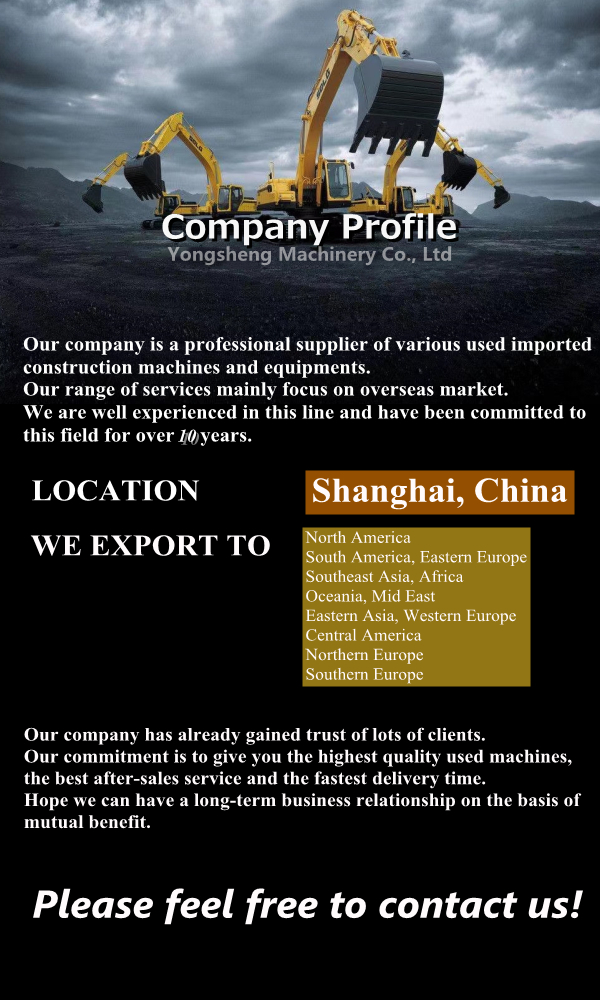 Our company specialized in export all kinds of the used construction machine.We have established good business relationship with many countries from all over the world such as Africa, Middle East, Saudi Arabic, West Asia, South East and so on.