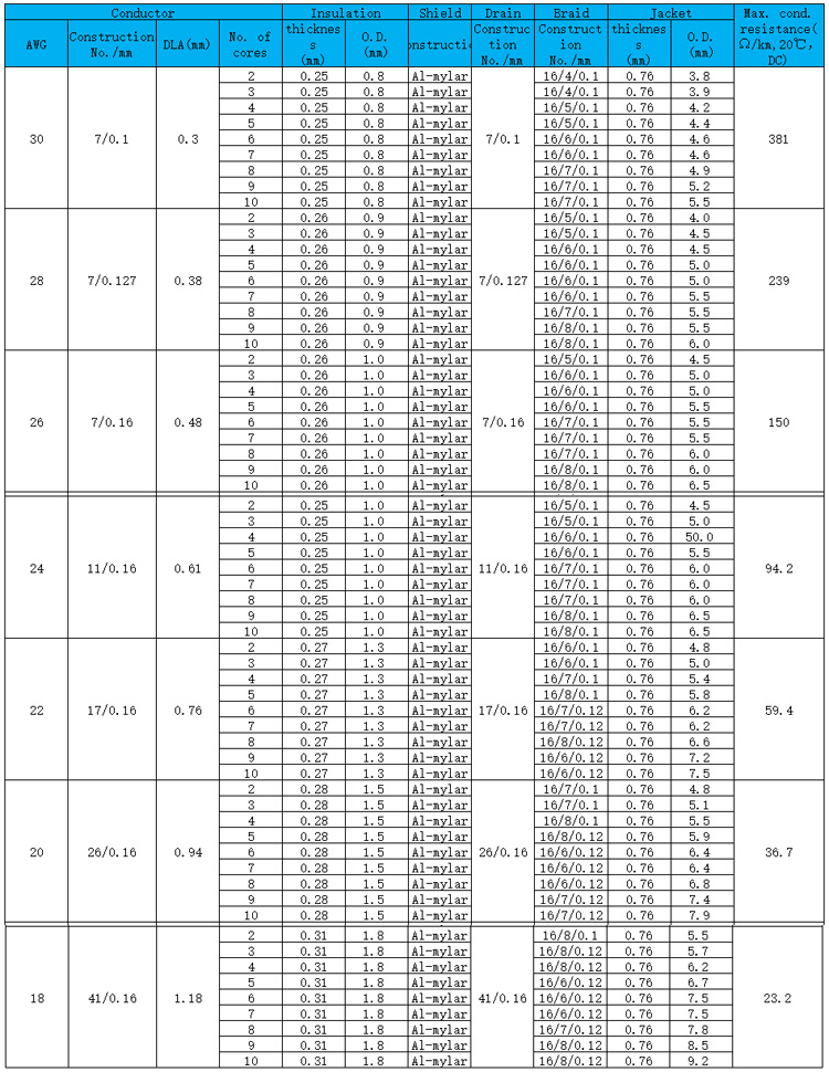 ●Stranded, tinned or bare copper conductor 0.22~2.5mm2
