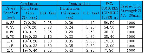 ●Stranded, tinned or bare copper conductor 0.22~2.5mm2