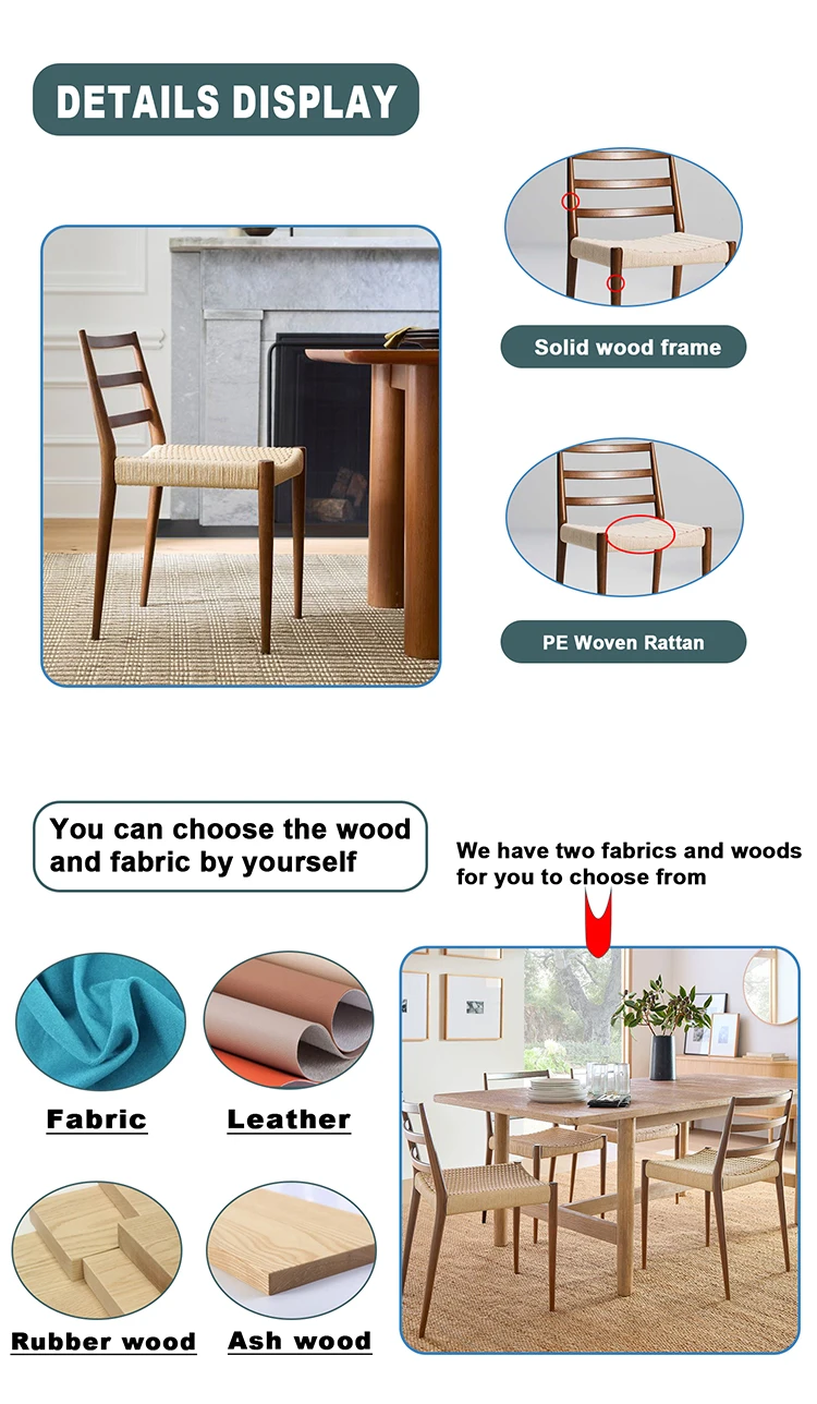 Modern Luxury Solid Wood Dining Room Chair Oak Restaurant Cafe Rattan Chair for for Coffee Shop and