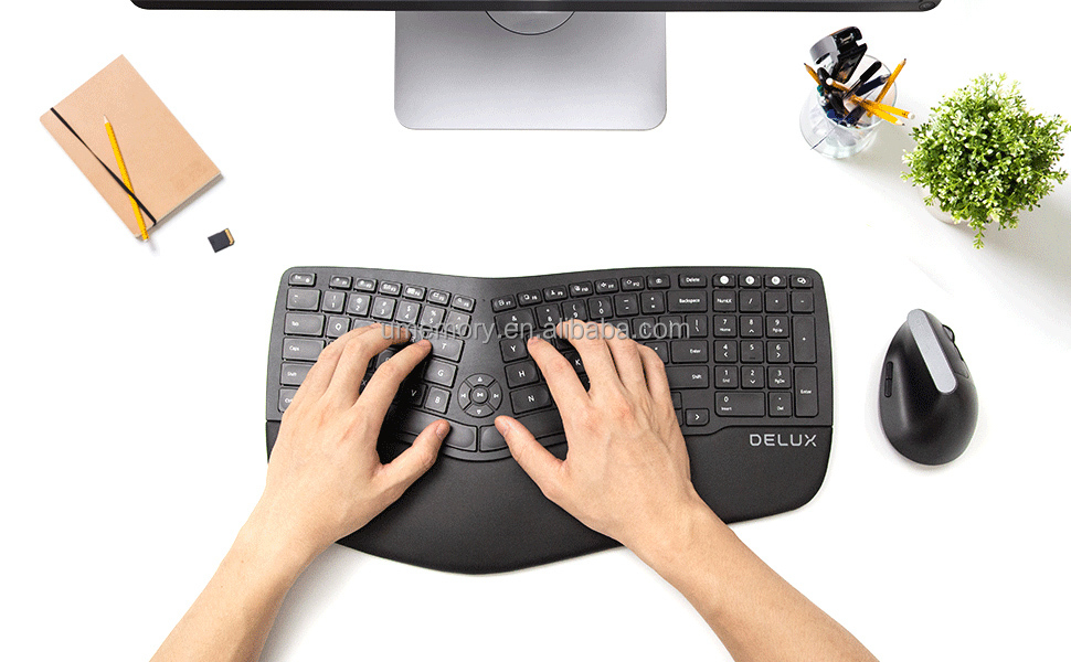 Delux GM902 BT 5.0 Scissor Switches Curve Shape Rechargeable Ergonomic Wireless  Keyboard