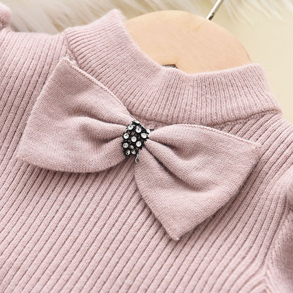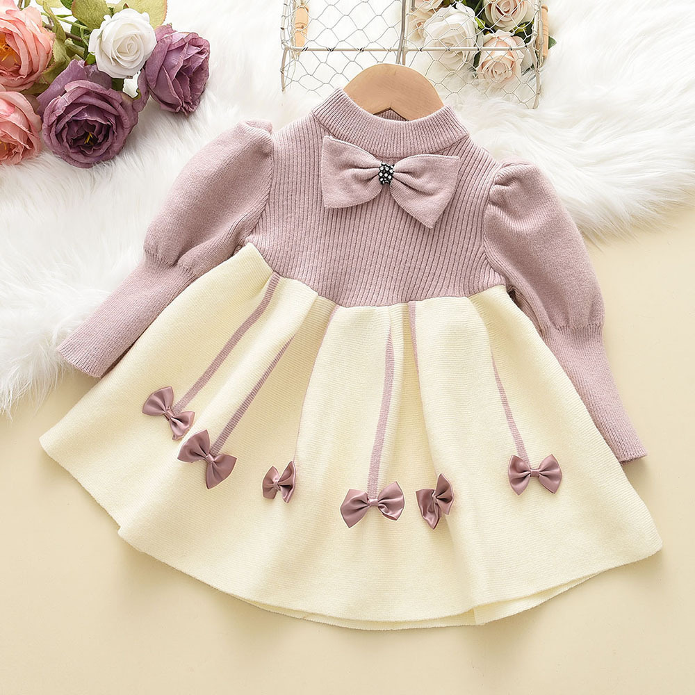Girls' Autumn Knitted Dress baby girl Bowknot Doll Dress