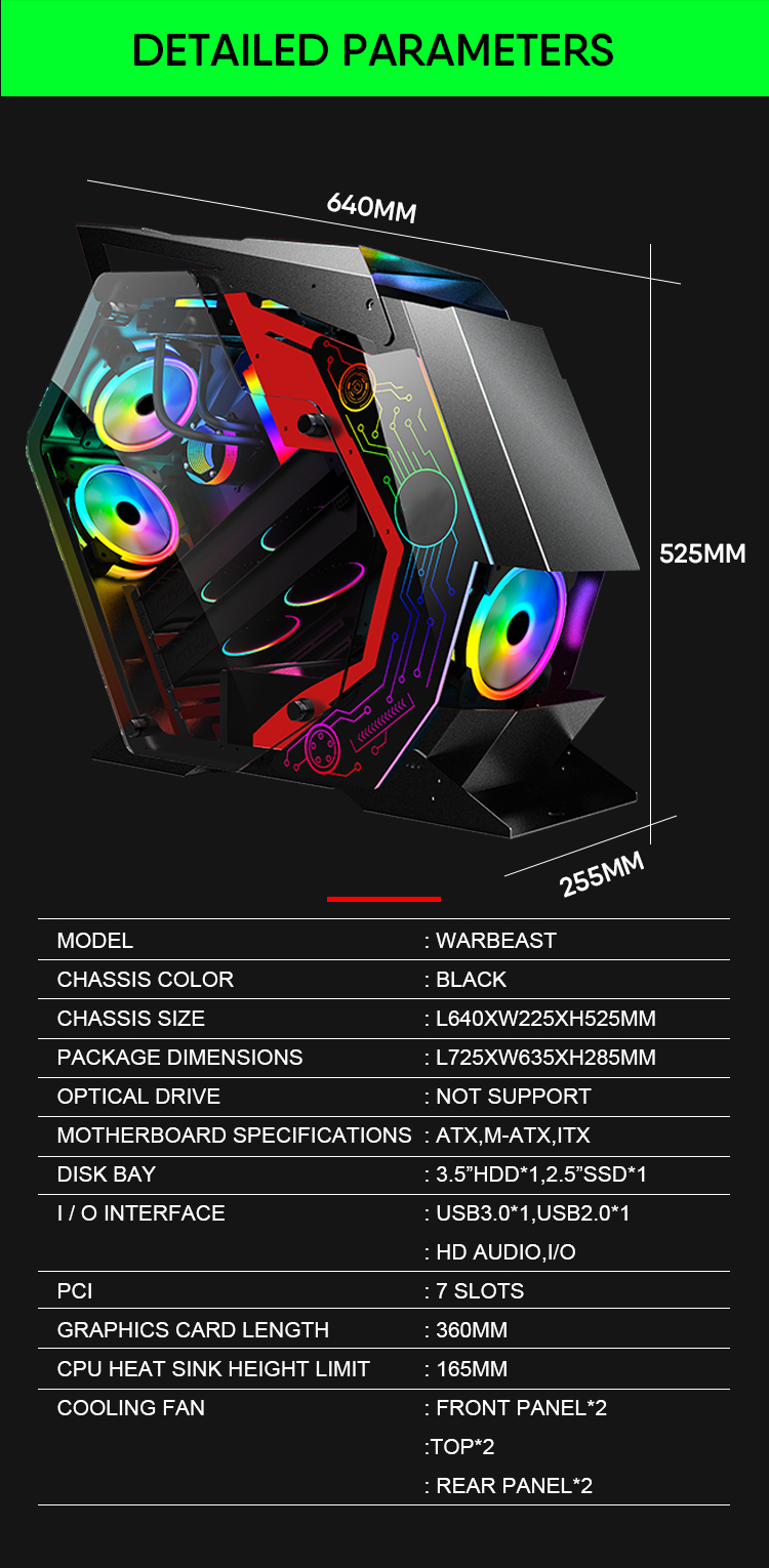 atx pc high end e-atx computer case fan desktop computer without cpu cabinet pc chassis mini-itx case