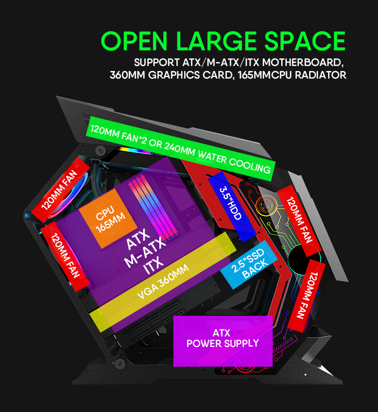 Front 2X120MM fan Rear 2X120MMfans Top2x120mm fans
