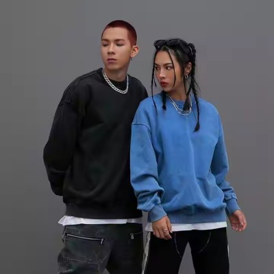 Custom Logo Batik Essential Black Xxxxl Street Wear Knit Acid Wash Pullover Embroidery Plus Size Men