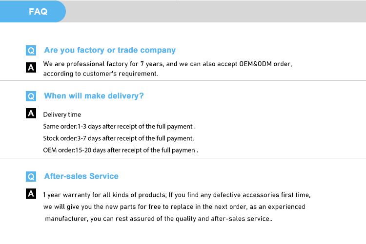 Quantity(pieces) 1 - 100 >100 Lead time (days) 5 To be negotiated