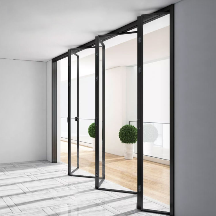Bi fold double glass exterior door aluminum frame balcony sliding folding door