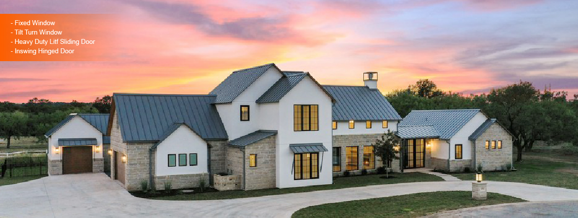 This project was created with Doorwin 70S tilt & turn windows and 160S lift & slide doors with ALU+ thermal break aluminum systems in the shade of black, highlighting the importance of lighting and accessibility, bringing the right values to it through the presence of large glass. In this regard, the GBG (grilles between the glass) décor, bring some historic and solemn sentiment to this modern house.