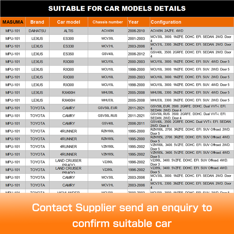 MASUMA auto parts covered more than 900,000 different OEM numbers, here only show few parts.