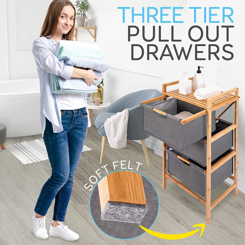 3-section independent bamboo bathroom storage rack drawer laundry towel cabinet sorting basket