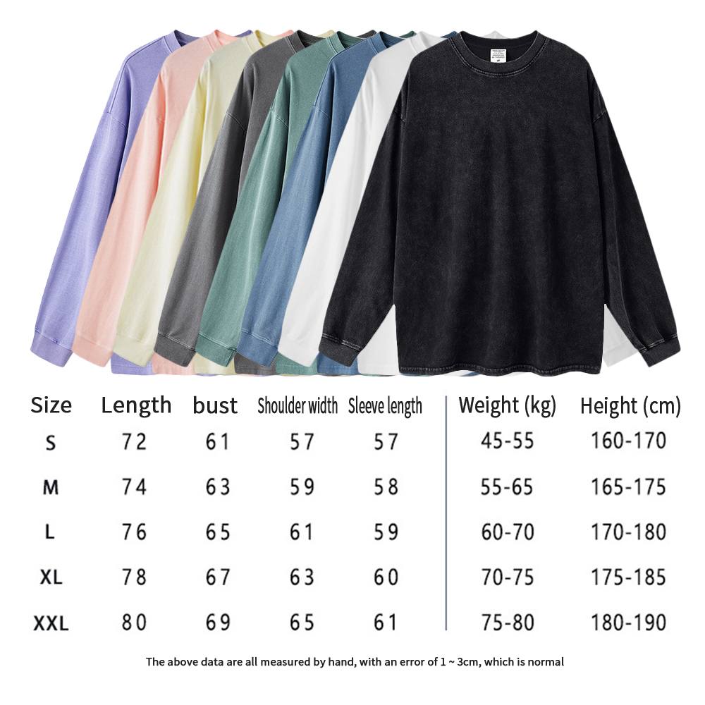 Home > Sell > Wholesale 260Gsm High Quality 100% Cotton 12 Color Vintage Loose Crewneck Wash Long Sleeve T Shirt