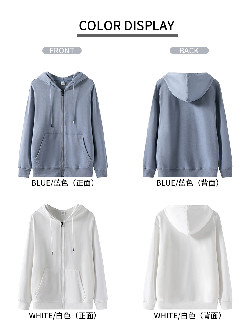 Custom Logo Embroidery Zip Up Blank Hoodie