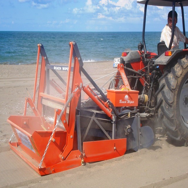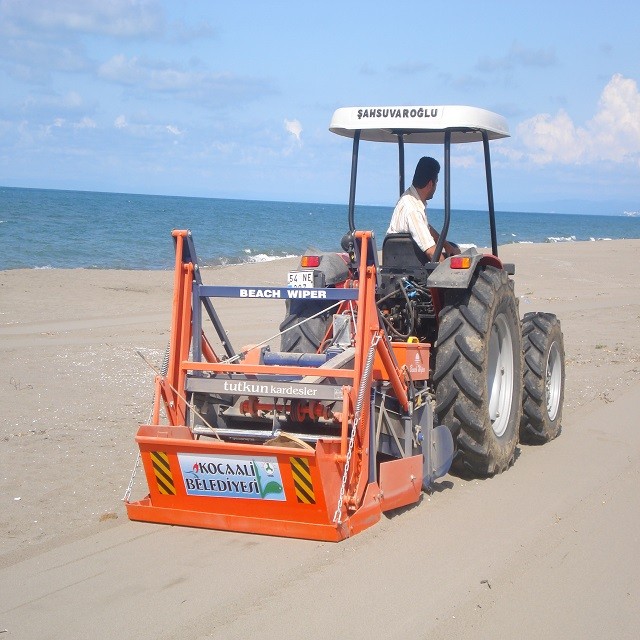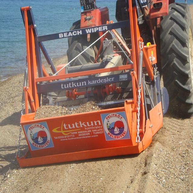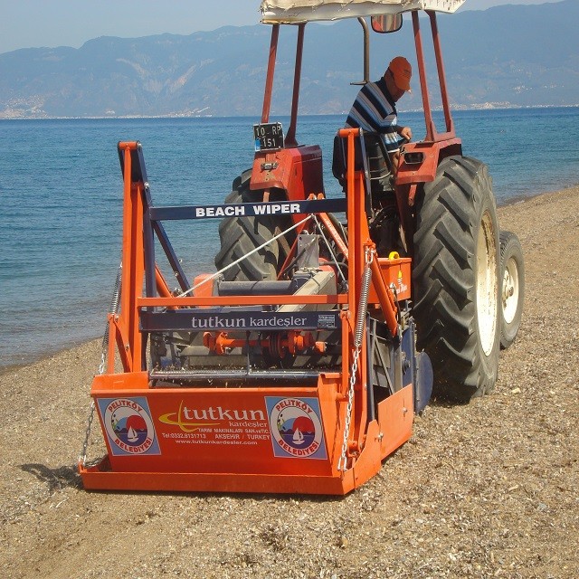 TUTKUN Tractor-towed beach cleaning machine, ideal to be used with 4-wheel drive tractors, it is perfect for cleaning of dry-wet sandy areas (beaches, golf courses bunkers, playgrounds, etc).