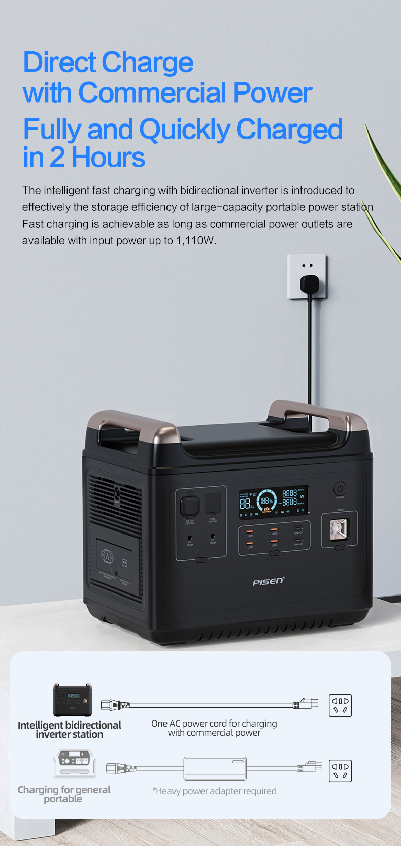 Pisen new energy lifepo4 battery storage systems 230V 50Hz 1000W lithium portable outdoor mobile power station with solar panel
