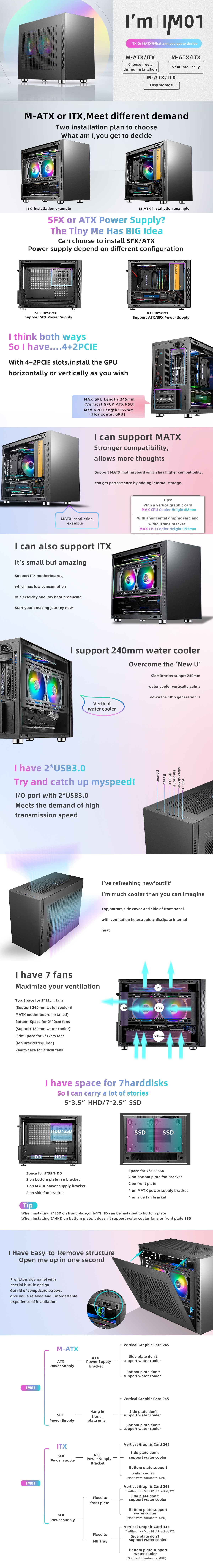 Key features:1.Front panel enabling direct airflow deliveries a much more balanced performance. 2.Support tempered glass. 3.Normative structure,new standard installatoin is not complicated and difficult any more. 4.Keep improving,now we have fast installation structure. 5.Dust filter on the top and bottom of the chassis helps to prevent dust from getting into your build and helps improve the performance of your chassis.
