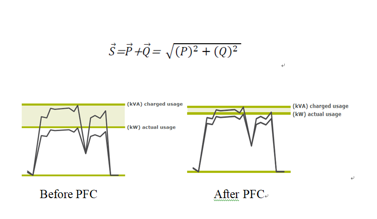 An improved power factor means that an electrical installation operates more economically (higher effective power for the same apparent power).