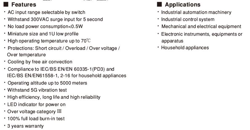 85 ~ 132 VAC, 170 ~ 264 VDC
