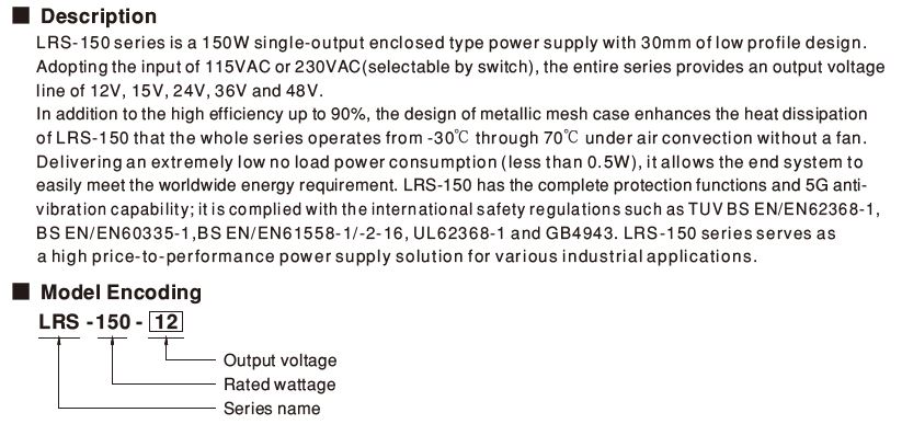 >> Why Choose Meanwell Single Output Enclosed Power Supply LRS-150-24 ?