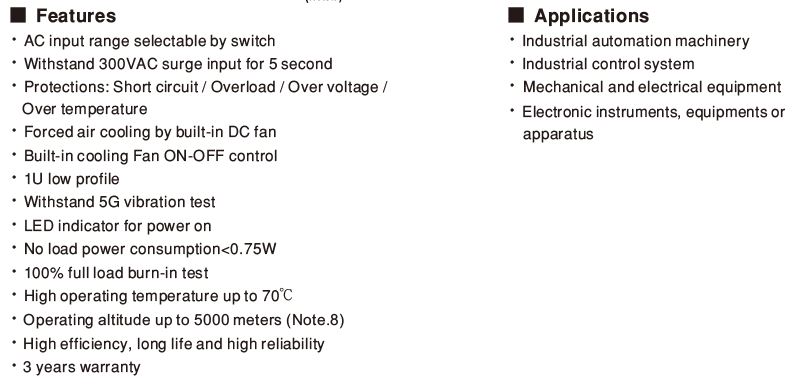 >> What are the main features of Meanwell Single Output Enclosed Power Supply LRS-350-48 ?