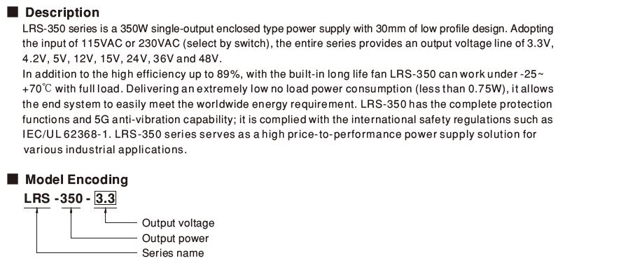 >> Why Choose Meanwell Single Output Enclosed Power Supply LRS-350-48 ?