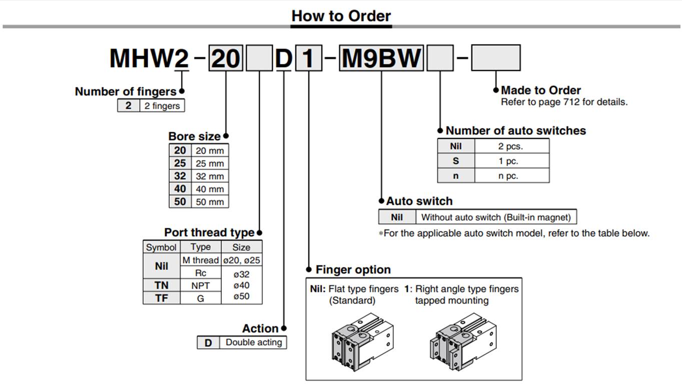 SMC MHW2 Series Air Gripper Pneumatic Parts