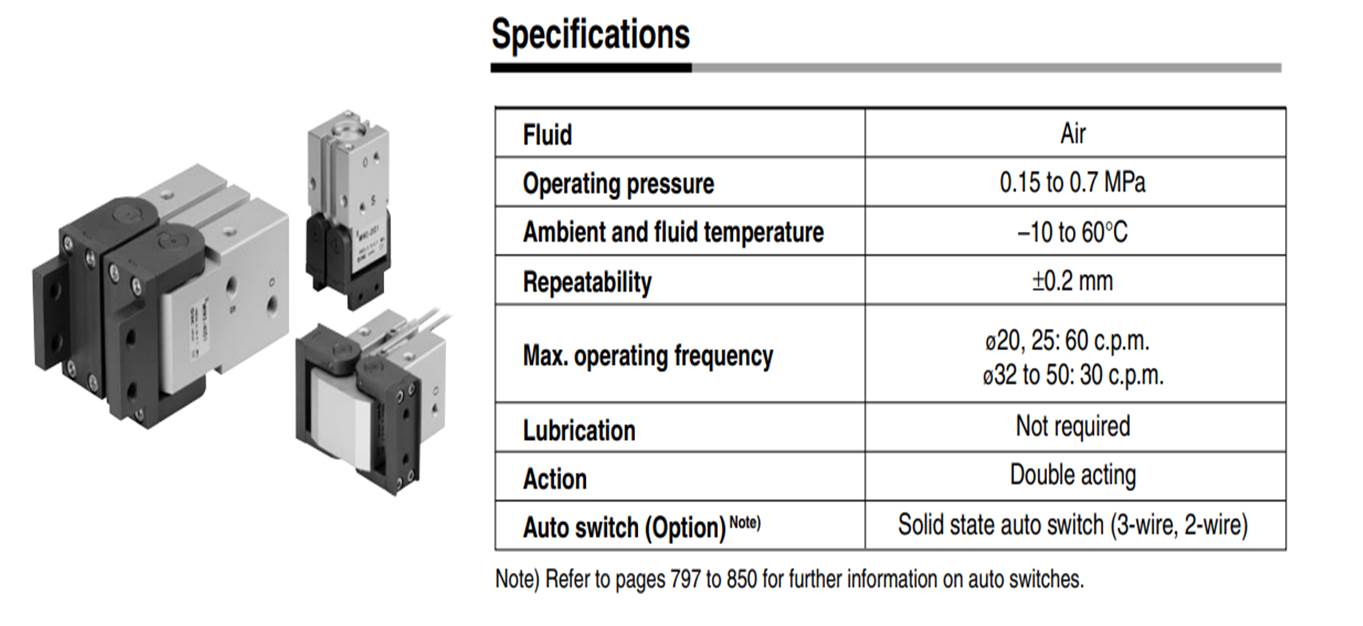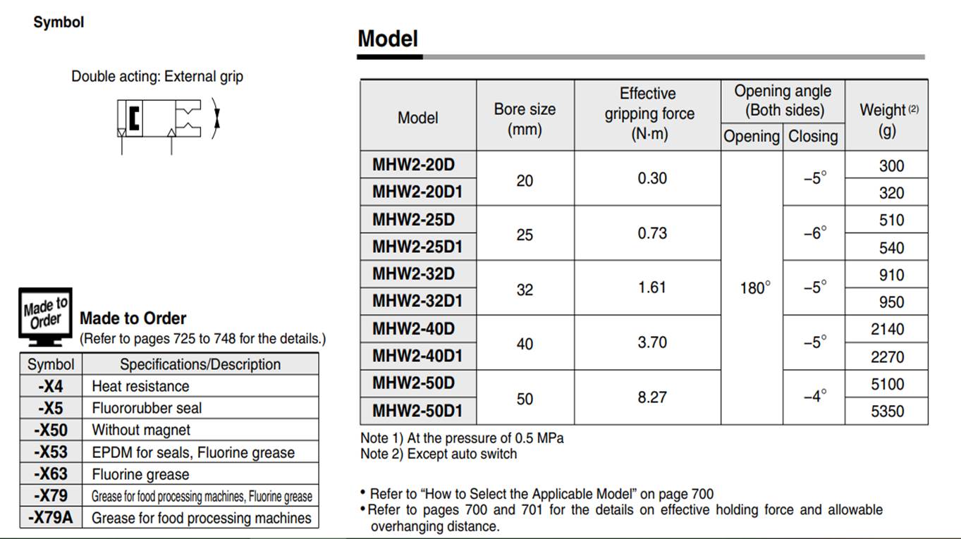 >> What are the Specification details of SMC MHW2 Series Air Gripper Pneumatic Parts?