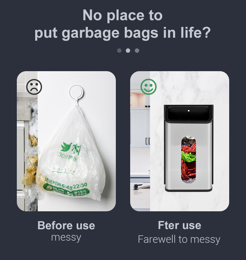 With the 3M stickers or screws provided, the plastic bag holder can be easily mouted on any wall or hung up into a cabinet.
