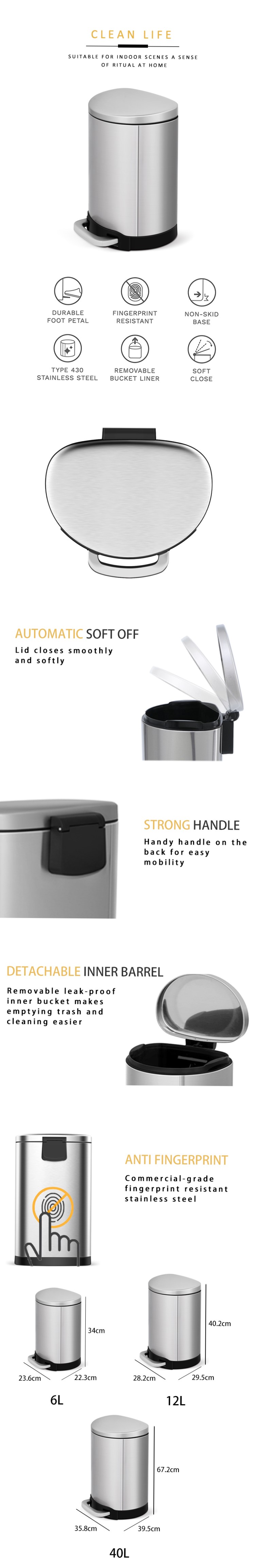 4. Removable inner bucket with lifting handle for easy trash disposal.