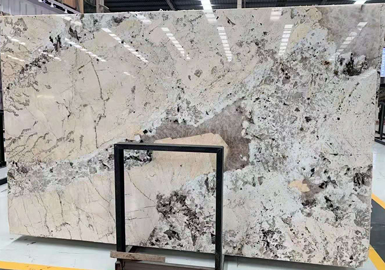Patagonia Granite is quarried from Brazil, also known as Patagonia Quartzite. based on a creamy white background, combined with yellow, grey, and black crystals, which is really dramatic and gorgeous for any project.