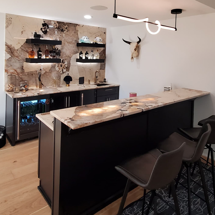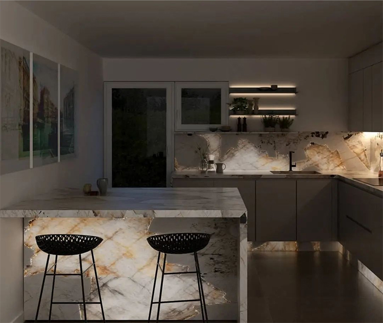 It can perform well in the backlit effect as its translucent texture, the crystals become more shinner under the light, creating a stunning landscape for your home.