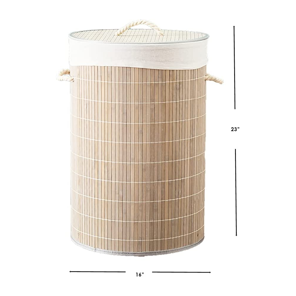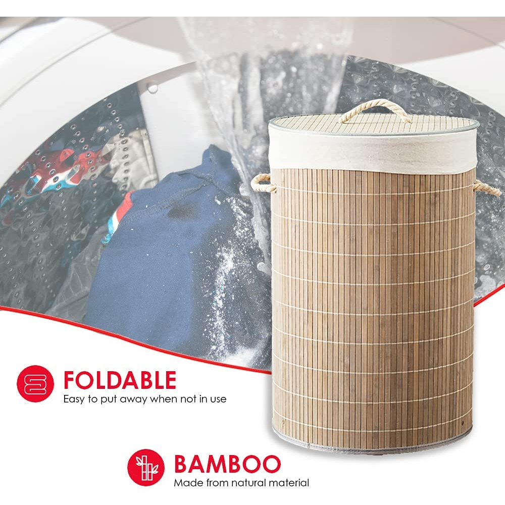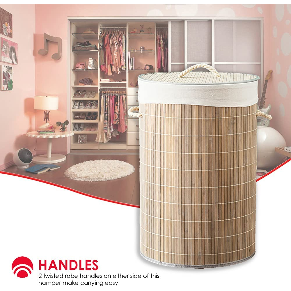 Round handle easy-to-open lid foldable and durable bamboo laundry basket
