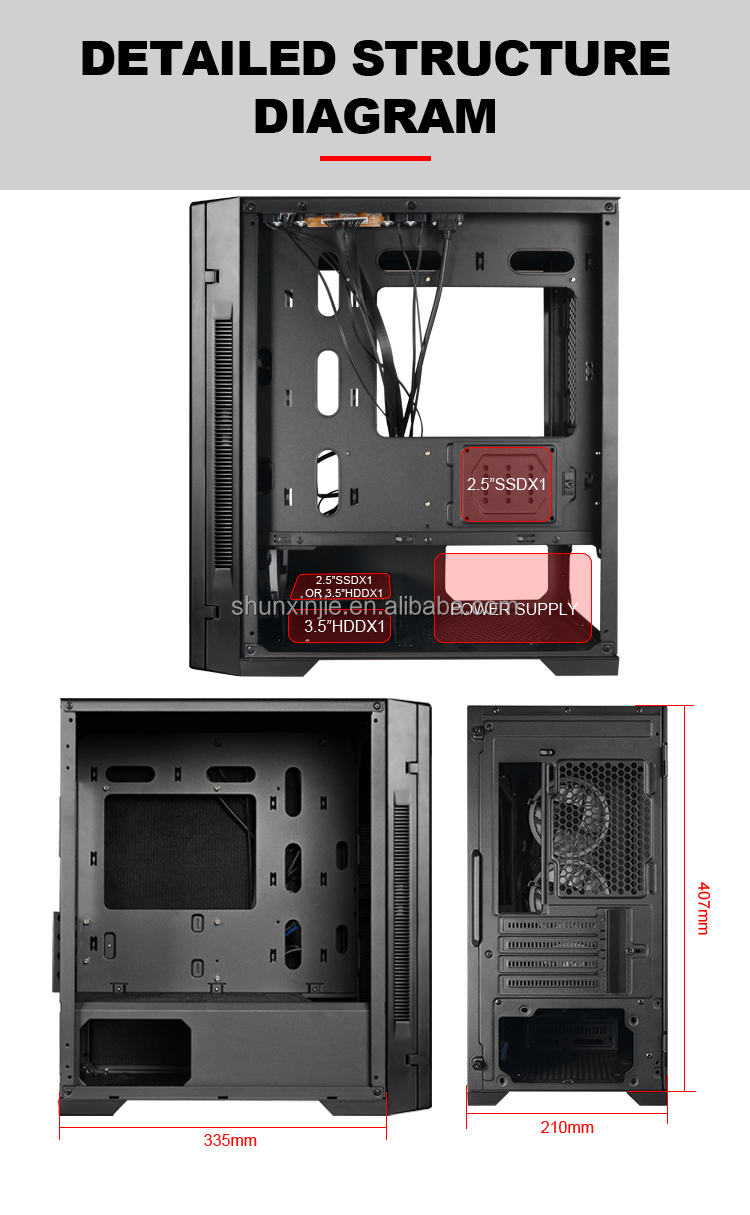 18 years factory! Beginner level gaming case, with tempered glass for side computer case