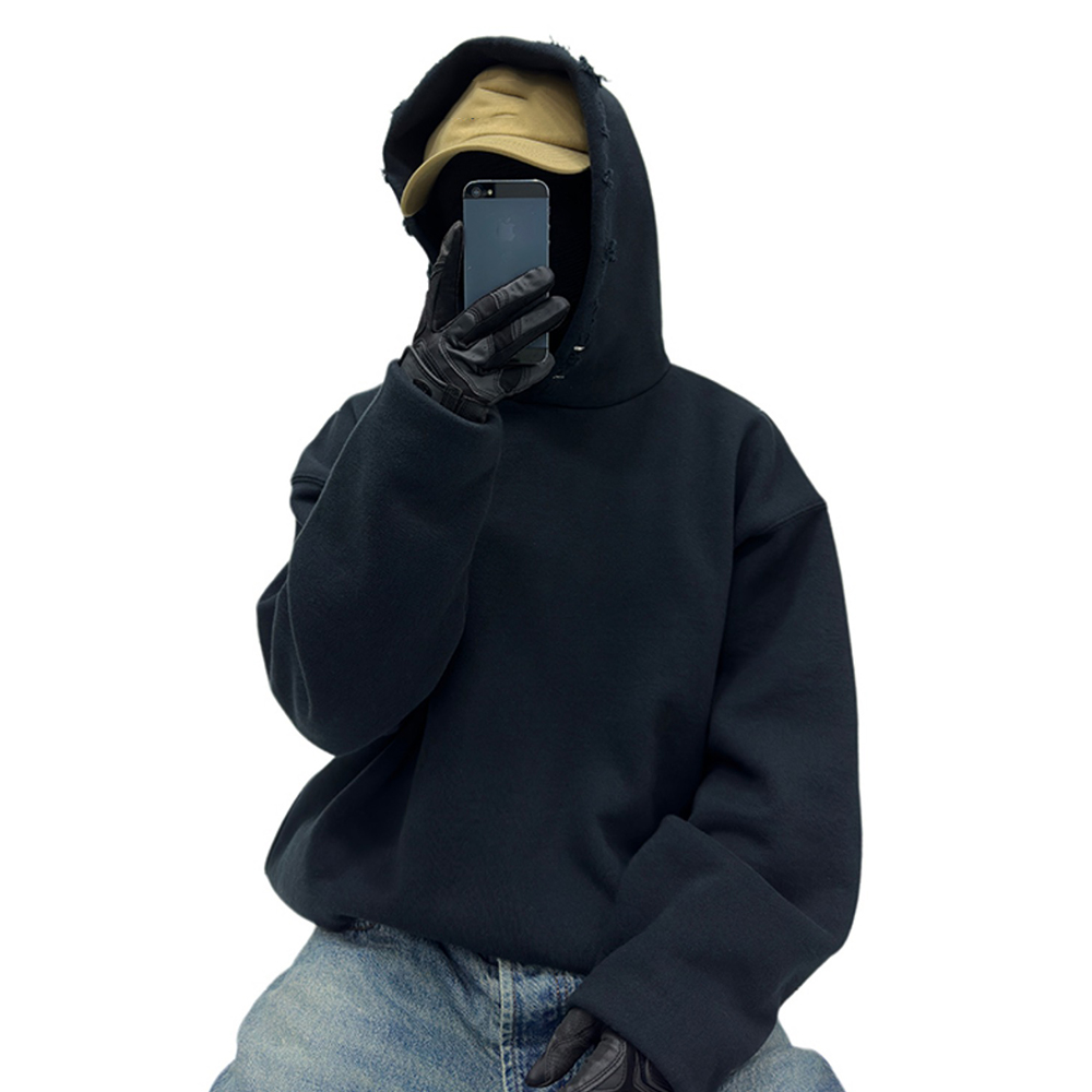 Custom Logo 100% cotton cropped fit hoodies no strings blank distressed pullover hoodie