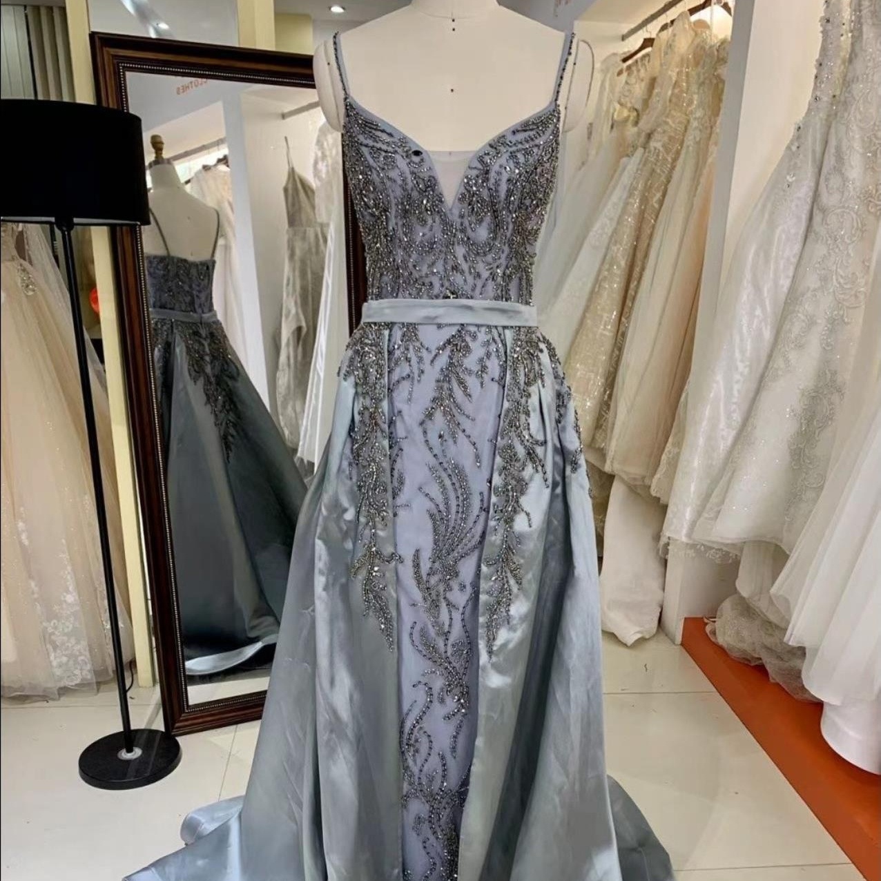 Chaozhou customized off shoulder floor length sexy luxury mint mermaid evening dresses