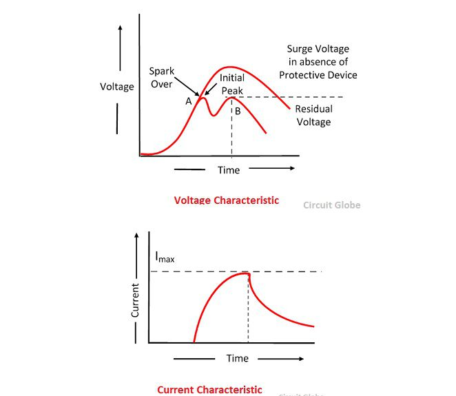 When a travelling wave reaches the arrestor, its sparks over at a certain prefixed voltage as shown in the figure below. The arrestor provides a conducting path to the waves of relatively low impedance between the line and the ground. The surge impedance of the line restricts the amplitude of current flowing to ground. The lightning arrester provides a path of low impedance only when the travelling surge reaches the surge diverter, neither before it nor after it. The insulation of the equipment can be protected if the shape of the voltage and current at the diverter terminal is similar to the shape shown below.ET plastic containers and bottles in all shapes.