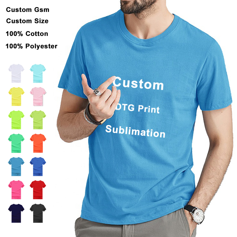 Wholesale DTG Custom T shirt Printing Sublimation T shirts 100% Polyester / 100% Cotton Plain T-shir