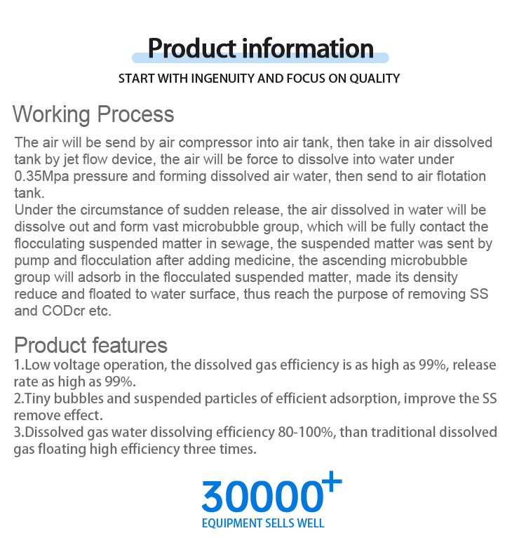 Dissolved Air Flotation Machine for Wastewater Treatment Solid-Liquid Separation Equipment for Food
