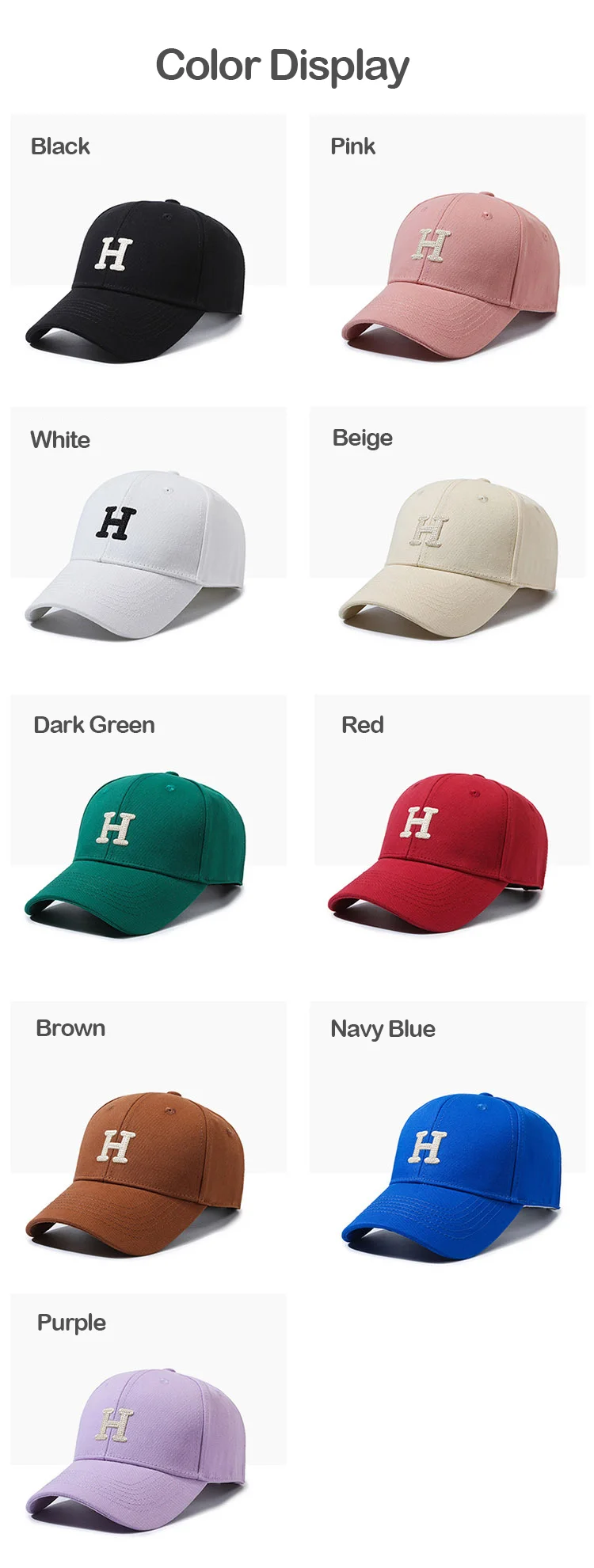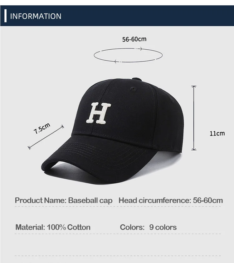 Unisex Basic Hat Letter Embroidered Baseball Cap Solid Color Adjustable 6 Panel Cotton Curved Brim S