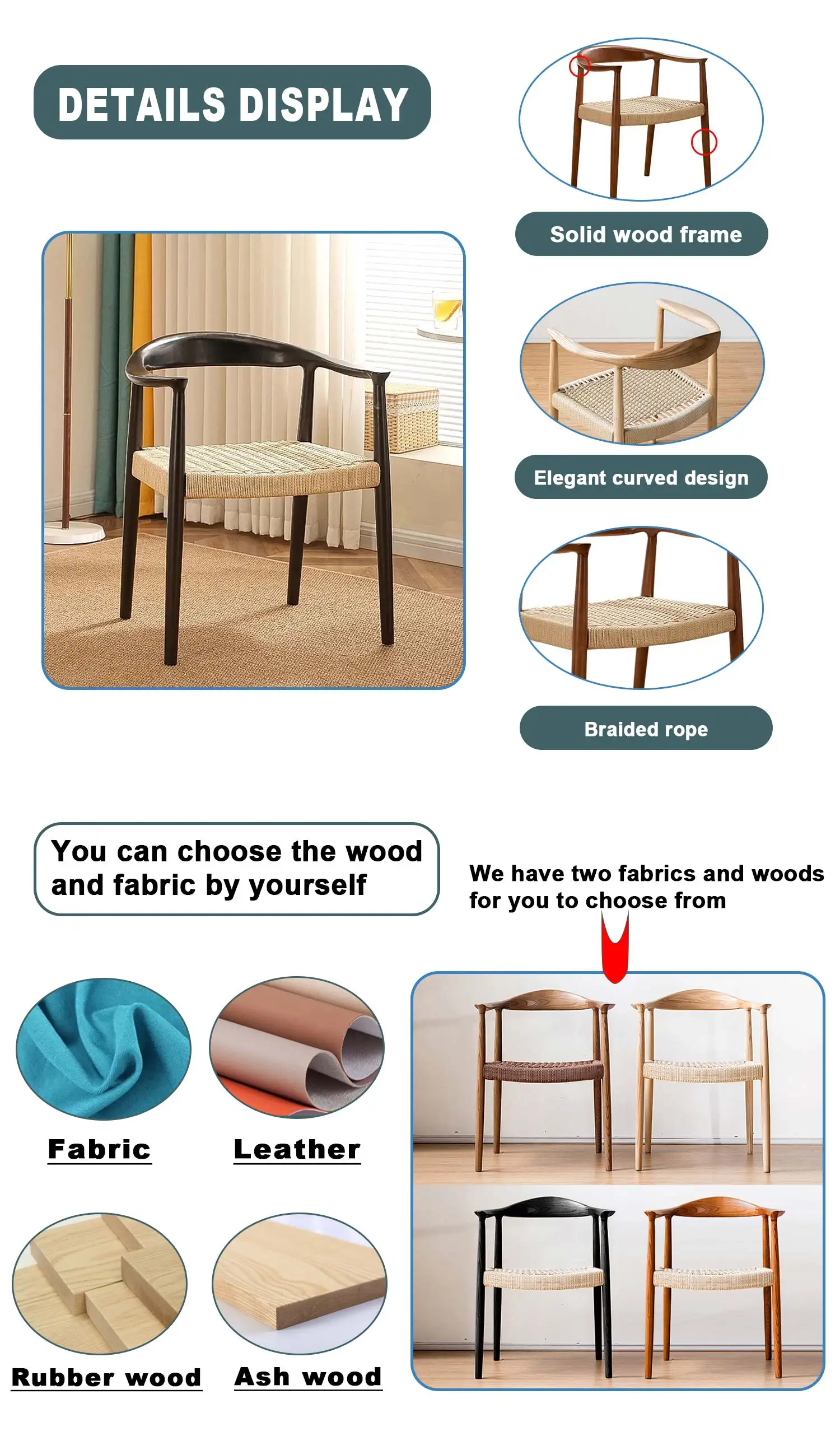 European Wooden Dining Chairs Black Walnut Wood Dining Room Wood Chair Rope Woven Brown Restaurant W