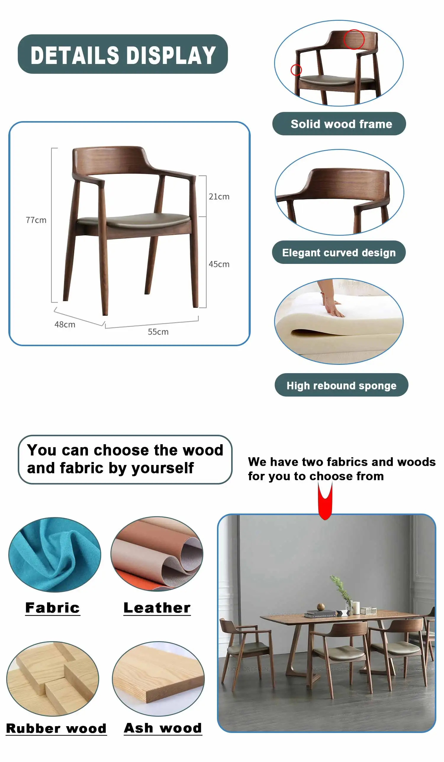 Modern Luxury Nordic Dining Chair Wood Elegant PU Leather Arms Restaurant Coffee Shop Dining Room Ch