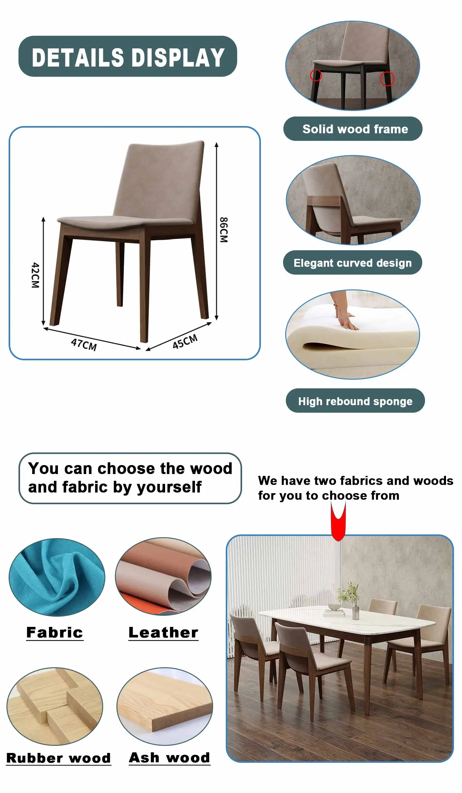 Fabric/PU + Solid wood
