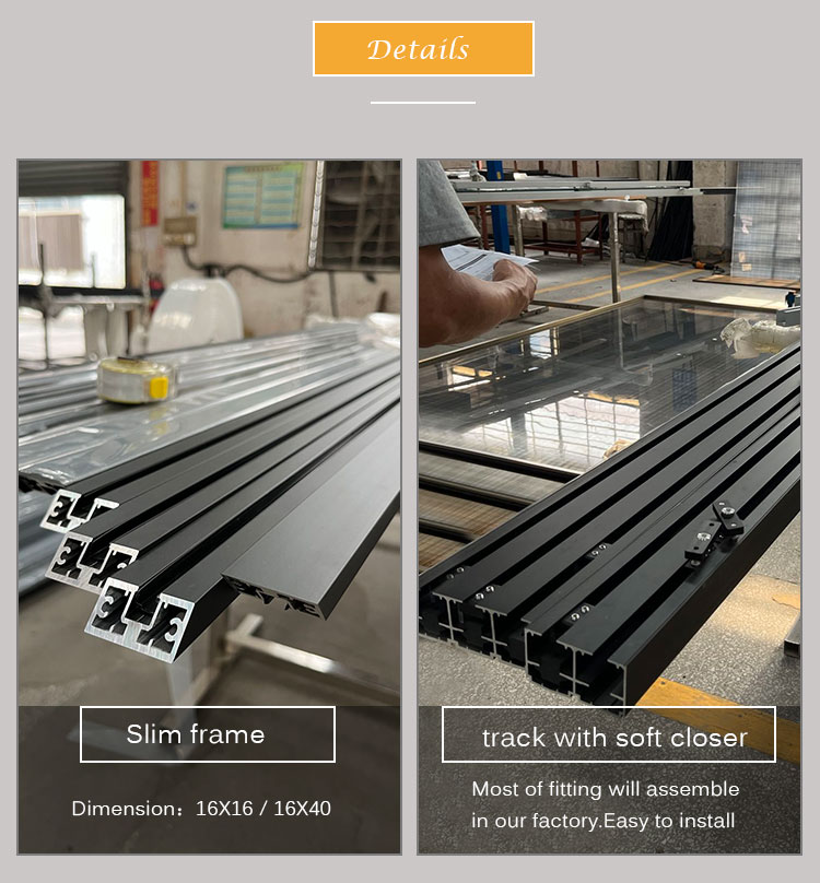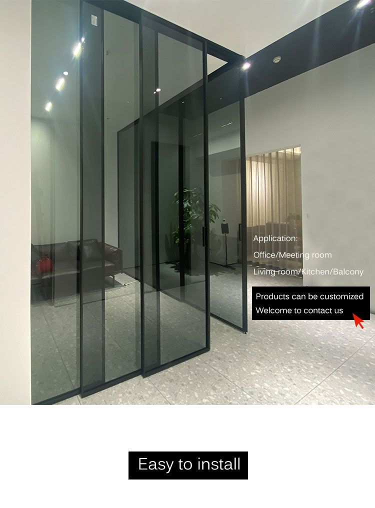 #Door frame material:aluminum #Finished:matte black #Door frame dimension:40X16mm #Design:modern 、elegant、popular #Application:office、meeting room、hotel and so on #Installation:ceiling mounted#Easy install:It take 20 minutes to install this door on live streaming