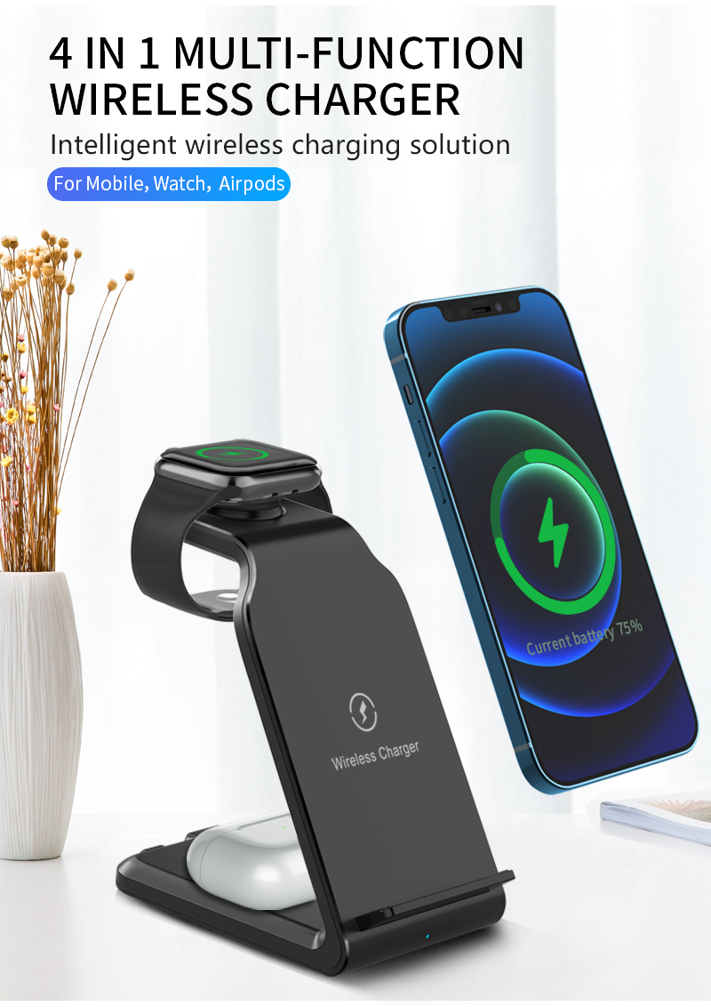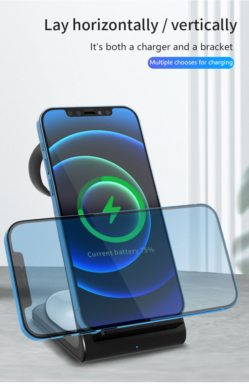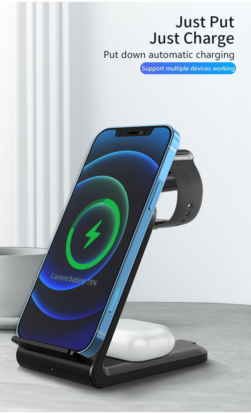15W QI Fast Wireless Charging Station Wireless Charger Dock Stand For iPhone Apple Watch Airpods 3 In 1 Wireless Charger