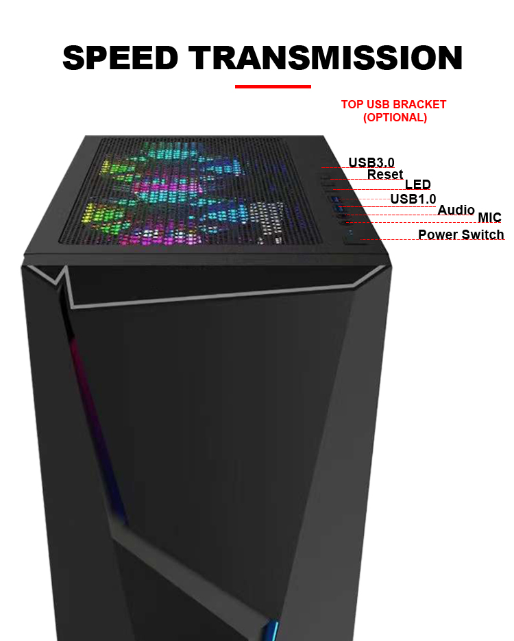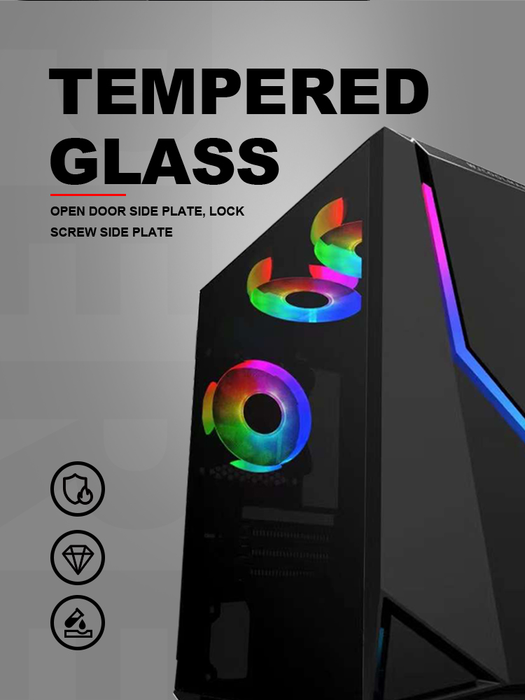 18 years factory with RGB fan Type C tempered class metal structure gaming case