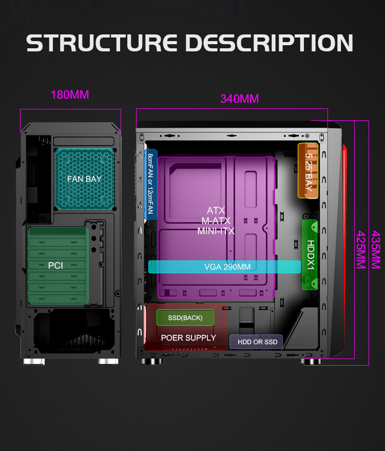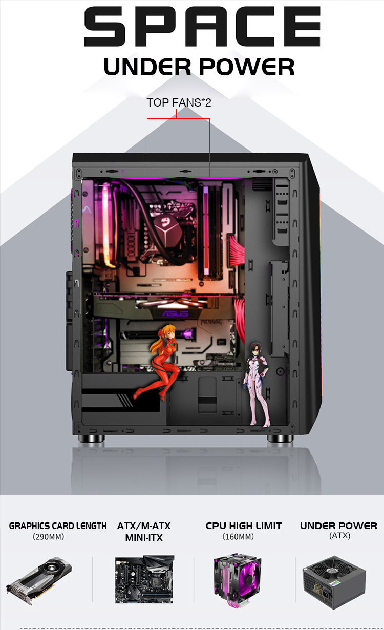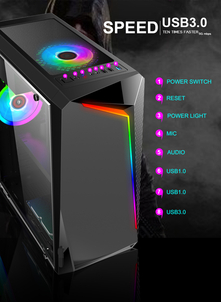 18 years factory!cpu gamer, with tempered glass for front panel & RGB fan Gamer case SX-C8318