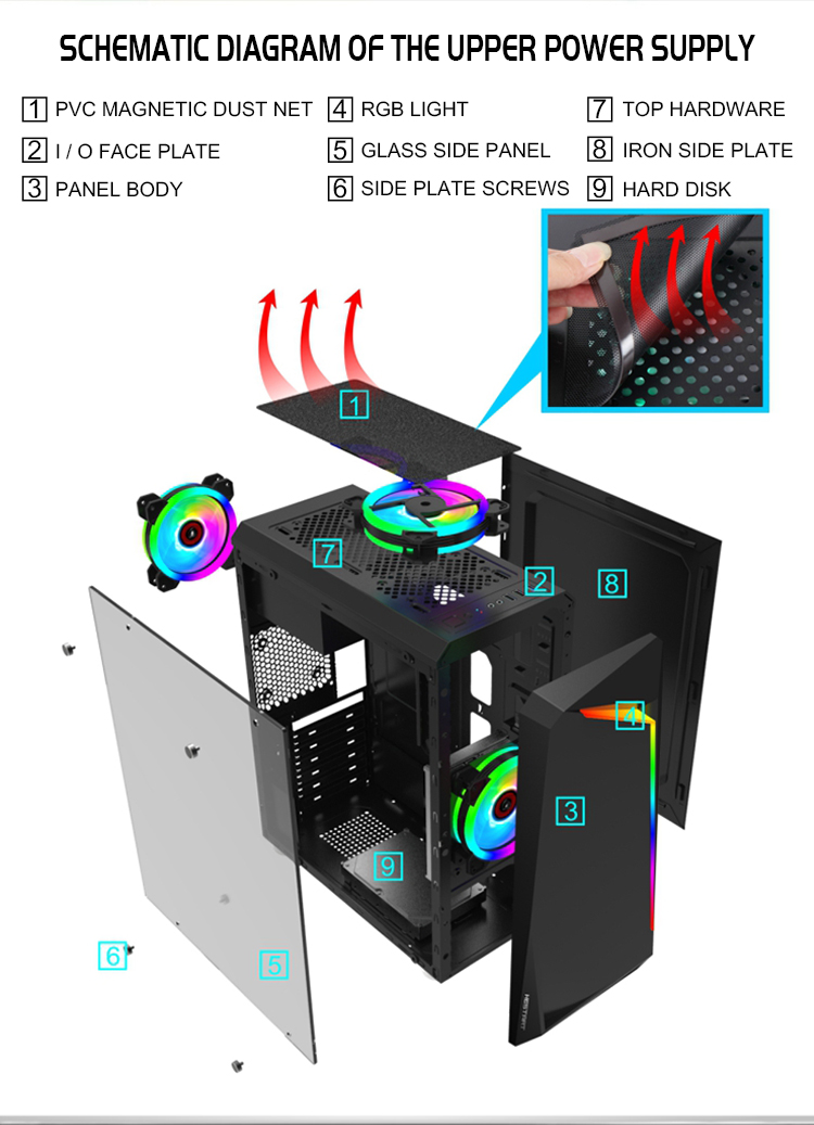 pc parts in OEM custom branded colourful for gamer best selling LED ATX gaming computer case