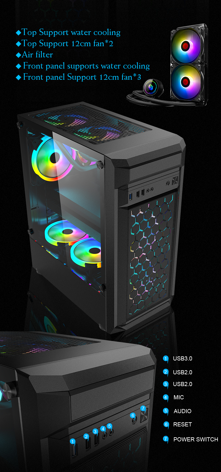 18 years factory!cpu gamer, with tempered glass for front panel & RGB fan Gamer case SX-C8318