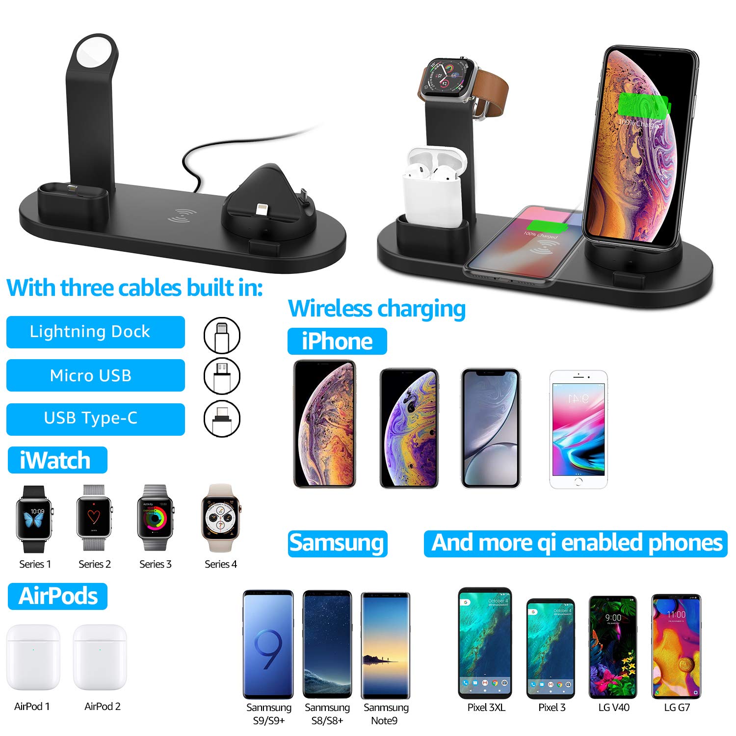 Multi device QI Fast Wireless Charging Dock All in One Wireless Charging Stand 6 in 1 Wireless Charger